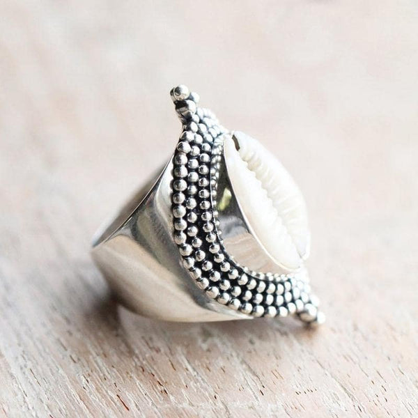 este suntuoso Anillo Cauri Plata lleva consigo todos los elementos de la nobleza africana tradicional. El uso de este magnífico mariscos al engarzarlo le da toda la potencia y elegancia del auténtico estilo tradicional. Versátil, puedes llevarlo tanto con atuendos modernos como tradicionales. ¡Toma el!