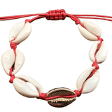 Trakteer uzelf op een frisse neus met deze rode schelparmband.